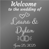 Wir stellen Ihnen fertige Layouts zur Verfügung, die Ihnen bei der Gestaltung Ihres Aufklebers für das Willkommensschild zur Hochzeit helfen.