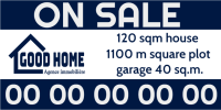 Immobilienbanner werden häufig verwendet, um die Aufmerksamkeit von Passanten, Autofahrern oder potenziellen Käufern zu erregen, die in der Gegend unterwegs sind. Sie enthalten häufig Informationen über die Immobilie, z. B. Preis, Größe, Merkmale und Kontaktdaten des Verkäufers oder Immobilienmaklers.