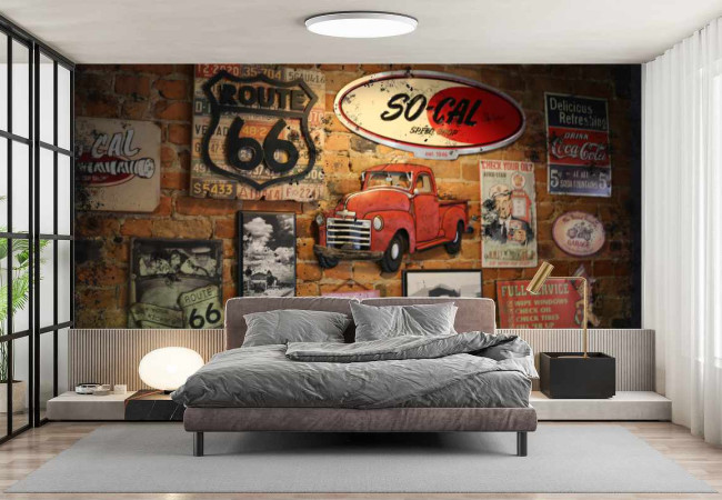 Vintage-Tapeten mit Kleister Route 66-Paneele